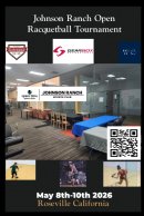 Future Racquetball Tournaments1Wall King of the Bay BonanzaDate:3/7/2026 - 3/7/2026 Location: Concord Community Park. Concord, CA 1Wall King of the Bay BonanzaDate:3/7/2026 - 3/7/2026 Location: Concord Community Park. Concord, CA California Nevada Junior State Championships and Adult Shoot OutDate:3/28/2026 - 3/29/2026 Location: Bay Club Pleasanton. Pleasanton, CA The Player's Championship 3 Wall OutdoorDate:4/16/2026 - 4/19/2026 Location: Los Cab. Fountain Valley, CA 2026 36th Women's Senior Masters Racquetball Championship - Fountain ValleyDate:5/1/2026 - 5/3/2026 Location: Los Caballeros. Fountain Valley, CA 2026 Outdoor Nationals Racquetball ChampionshipsDate:7/10/2026 - 7/12/2026 Location: Marina Park. Huntington Beach, CA Pro Kennex Vic Memorial OpenDate:7/17/2026 - 7/19/2026 Location: Johnson Ranch Sports Club. Roseville, Ca, CA Sanction New Racquetball EventUnited States Racquetball Upcoming TournamentsVisit the Official United States Racquetball Event Website